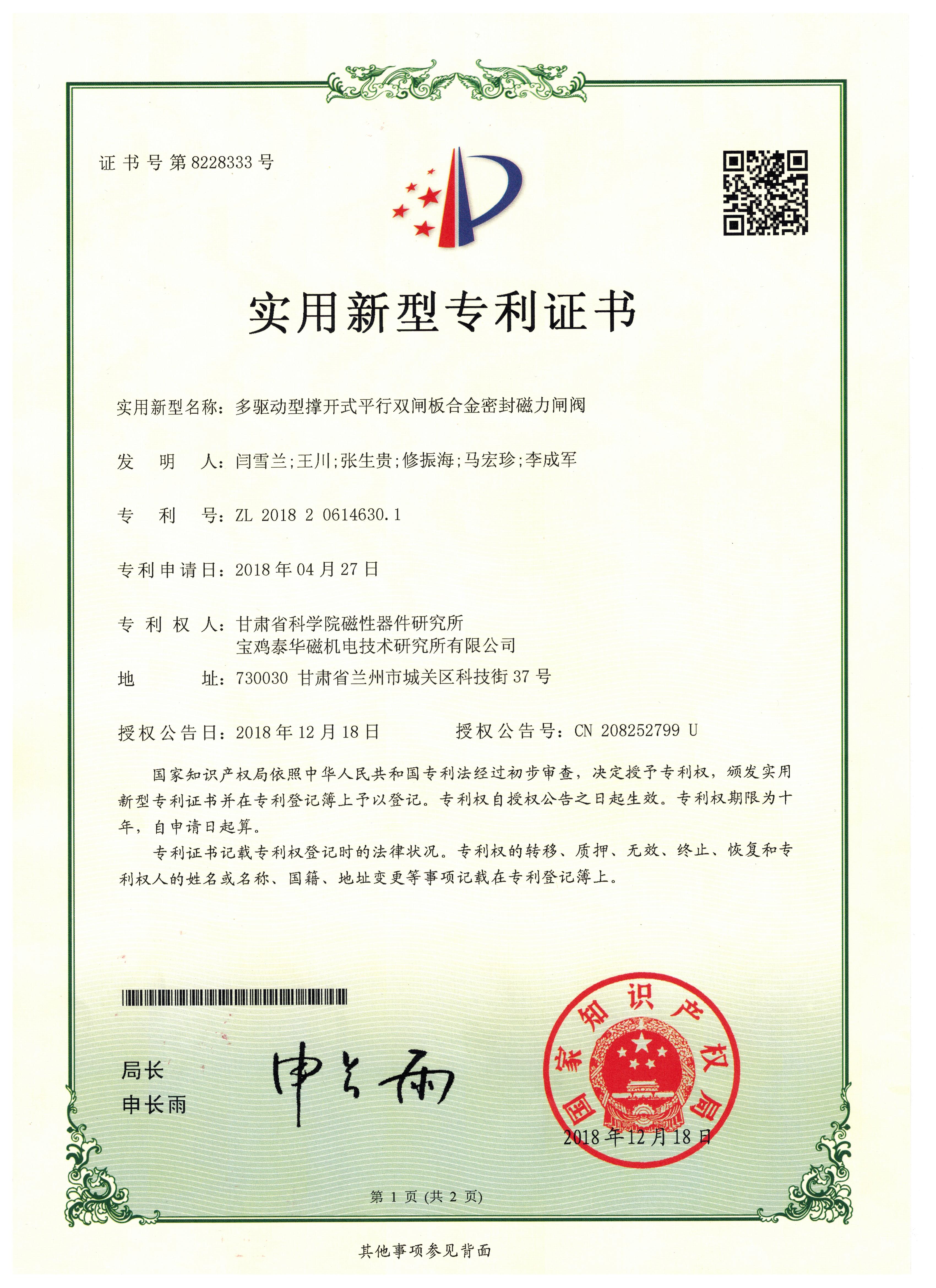 多驅動型撐開式平行雙閘板合金密封磁力